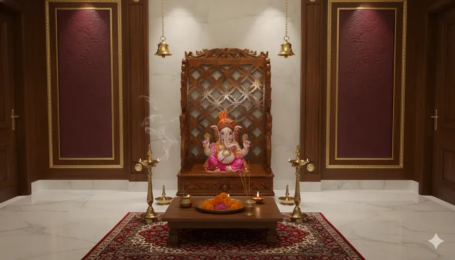 . Size: 48″ × 20″ × 48″ approx. (L × B × H), ideal for home pooja spaces.