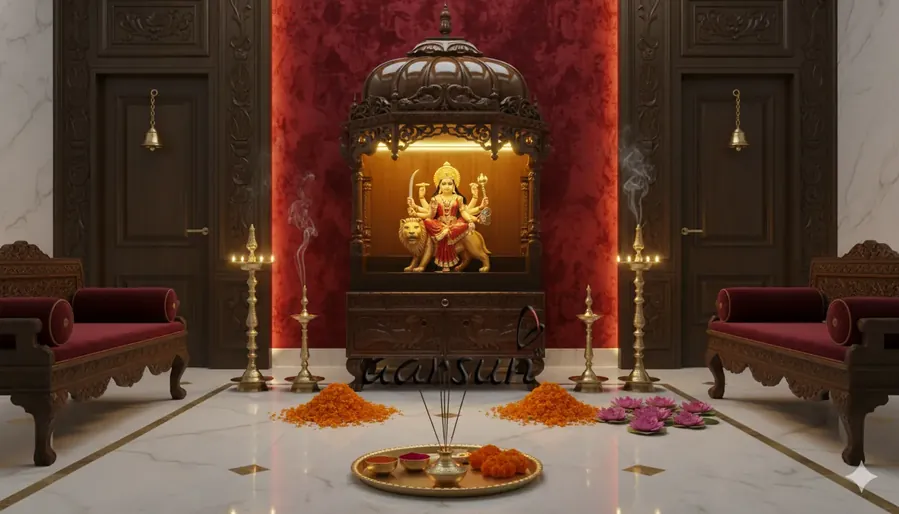 . Aarsun handcrafted wooden temple / puja mandir for home, designed by skilled artisans.