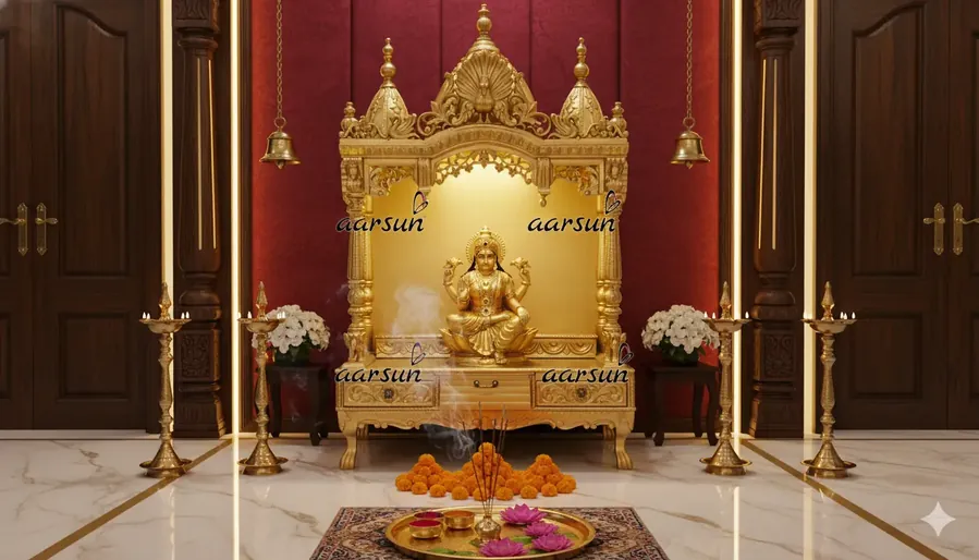 This stunning Gold Finish Temple is handcrafted from premium Teak Wood by skilled artisans. Perfect for home and office spaces, this temple enhances the spiritual ambiance and instills peace and positivity wherever it is placed.