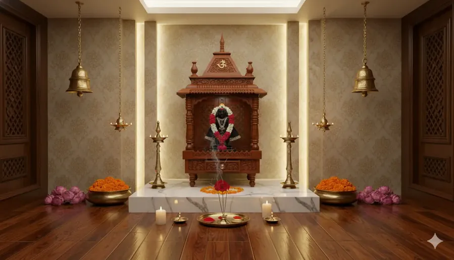 This handcrafted wooden home mandir is made from high-quality Sheesham wood and designed for compact spaces, making it ideal for daily pooja rituals in homes and offices while maintaining a traditional aesthetic. Featuring elegant carvings, a well-defined Garbhagriha, and a practical pull-out drawer for pooja essentials, this rosewood temple blends devotion with functionality. The sturdy construction, fine finish, and thoughtful proportions ensure long-lasting durability and spiritual ambiance, making it a perfect choice for those seeking a premium yet space-efficient wooden mandir for their home.