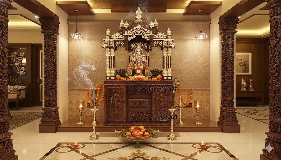The ISKCON Wooden Temple Teak Wood YT-188 is a premium handcrafted pooja mandir designed with intricate detailing, a rich dark polish, and elegant golden highlights, making it ideal for home and office worship spaces. Crafted from high-grade teak wood, this wooden temple offers excellent durability, natural termite resistance, and timeless aesthetic appeal while providing ample space for idols and daily rituals. The thoughtfully designed drawer and slider tray enhance functionality, and customization options are available to suit your interior requirements. Watch the complete mandir walkthrough on YouTube.
