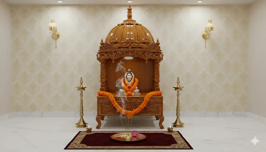 This beautifully handcrafted prayer unit in teak wood with high gloss finish is designed to create a serene and elegant spiritual space in your home. Expertly crafted by skilled artisans, it features a refined dome structure, carved wooden pillars, and a spacious pooja area for comfortable daily worship. Made using premium-quality teak wood, known for its durability and natural resistance to pests, this prayer unit offers long-lasting beauty with a rich, polished appearance. The tall cabinet-style design makes it ideal for modern interiors while maintaining traditional charm. Watch real product and craftsmanship videos on our YouTube channel here: Click Here .