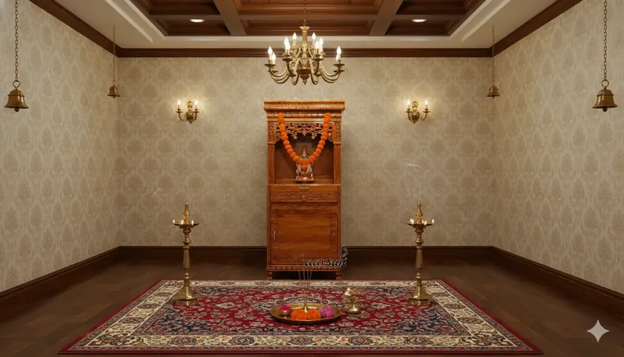 This handcrafted teak wood temple combines elegance, functionality, and spirituality. Made from premium quality solid teak, it is designed to enhance the pooja space in any home or office.