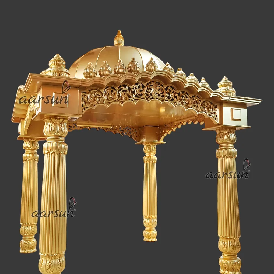 Aarsun presents a grand handcrafted Palki Sahib inspired by the iconic Guru Nanak Darbar Gurudwara in Dubai, created from premium quality teak wood for exceptional strength and longevity. This large and heavy unit is meticulously hand-carved by master artisans, featuring rich detailing and a refined gold finish with a semi-matte and semi-gloss combination. Designed to honor the spiritual significance of the Guru Granth Sahib, this Palki Sahib reflects devotion, reverence, and traditional Sikh craftsmanship. Due to its monumental size and solid teak construction, the unit requires professional assembly by multiple craftsmen. Customization is available to match specific architectural and devotional requirements.