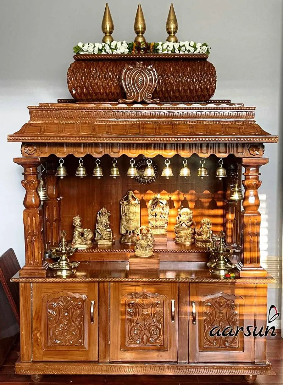 The Premium Indian Wooden Mandir with Classic Pillars is a timeless addition to any home pooja space, crafted meticulously from premium teak wood with a smooth PU polish finish. This mandir combines traditional Indian architectural elements with modern craftsmanship, featuring elegant pillars and a spacious interior perfect for daily worship. Handcrafted by skilled artisans, it ensures durability, aesthetic grace, and spiritual ambience. Ideal for devout homes seeking both functionality and divine elegance, this wooden mandir is suitable for global delivery and can serve as a centerpiece of devotion, serenity, and sacred beauty.