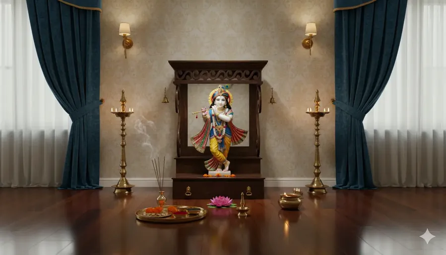 This Wall Mounted Temple MNDR-0087 is crafted from premium MDF and Sheesham Wood, offering a sleek and elegant design suitable for homes or offices. The temple features a two-step structure with a full-length drawer at the bottom for pooja essentials, a beautifully carved ceiling, and side panels. Polished in a rich dark walnut finish, it blends perfectly with any decor and is ideal for housing a single deity, though dimensions can be customized to accommodate multiple deities as needed. Its versatile design allows it to be mounted on a wall or placed on a shelf or cabinet, providing both functionality and aesthetic appeal.