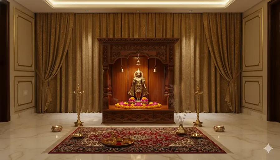 The Wooden Pooja Ghar – Mandir MNDR-0110 is a beautifully handcrafted temple made from premium quality teak wood, designed to bring positivity, devotion, and timeless elegance into your home. Crafted by skilled artisans, this compact yet functional pooja mandir features a dedicated sanctum for idols along with a convenient drawer for storing daily worship essentials. The natural strength, durability, and termite-resistant properties of teak wood ensure long-lasting performance while maintaining a rich traditional aesthetic. With its space-efficient size of approximately 24 inches in length, 12 inches in width, and 30 inches in height, this wooden pooja ghar is ideal for modern homes and apartments, and it can also be customized in size, finish, or design to perfectly suit individual requirements.